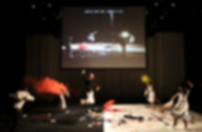 在《哈姆雷特机器》的舞台呈现中,导演王翀将画外音、四位戏曲演员的肢体表演、唱儿歌和玩电动玩具的小女孩、投映在天幕上的影像……不规则地拼贴在同一个台面上。各种不同的表演样式、不同的表演元素,虽是交错或同时出现,彼此却是各自独立的,既不构成冲突,也不形成间离,仿佛是单摆浮搁的铺陈。